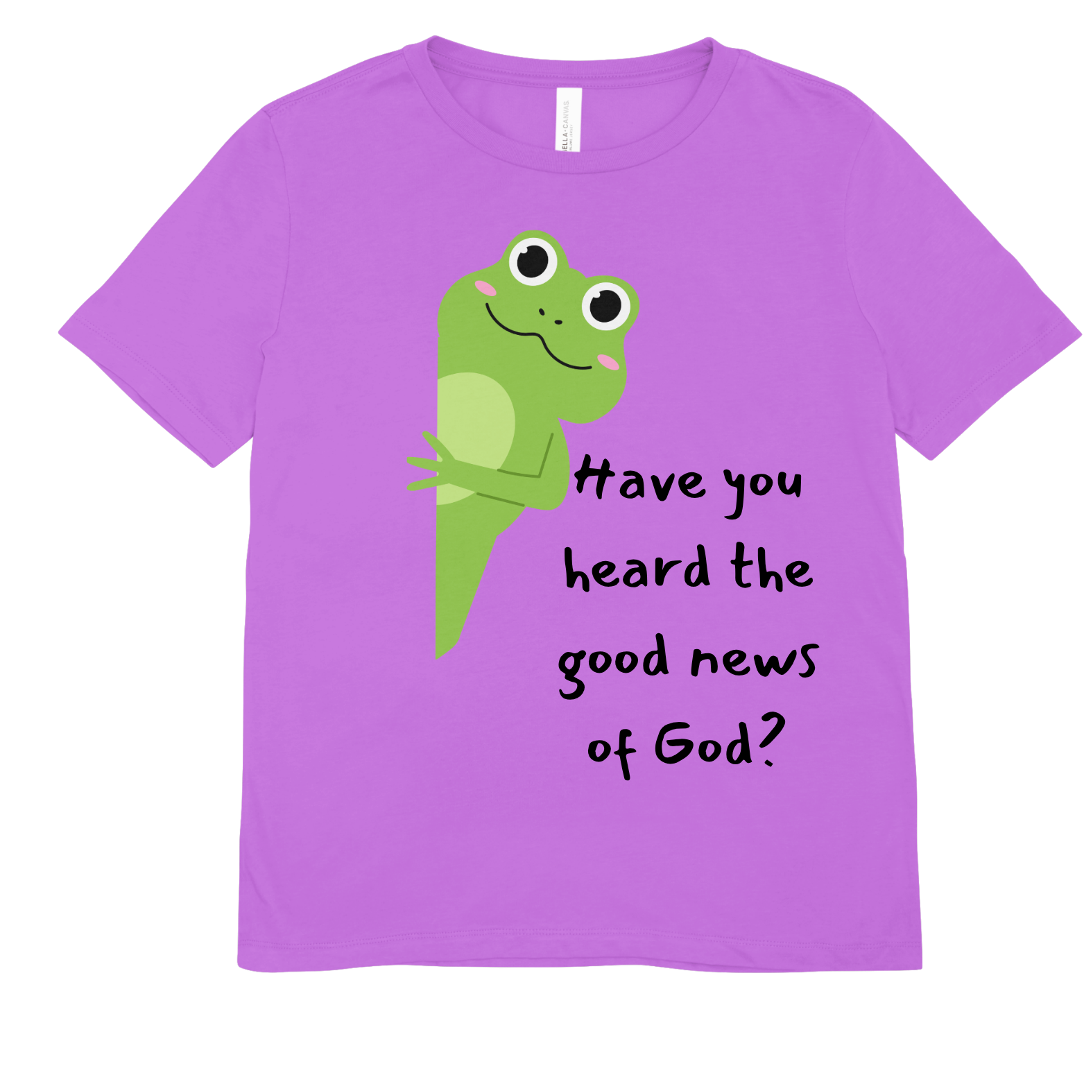 Wrap your little one in love with this charming "Gods News " shirt! Featuring a cute little frog and powerful bold words. Made from the softest material and perfect as a gift!