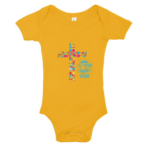 Bright, cheerful, and full of faith—this adorable baby onesie is perfect for your little light! Featuring a colorful cross made of fun polka dots and the uplifting message "Let Your Light Shine", this soft and comfy bodysuit is a sweet reminder of God’s love. Great for everyday wear, baby dedications, or as a meaningful gift.